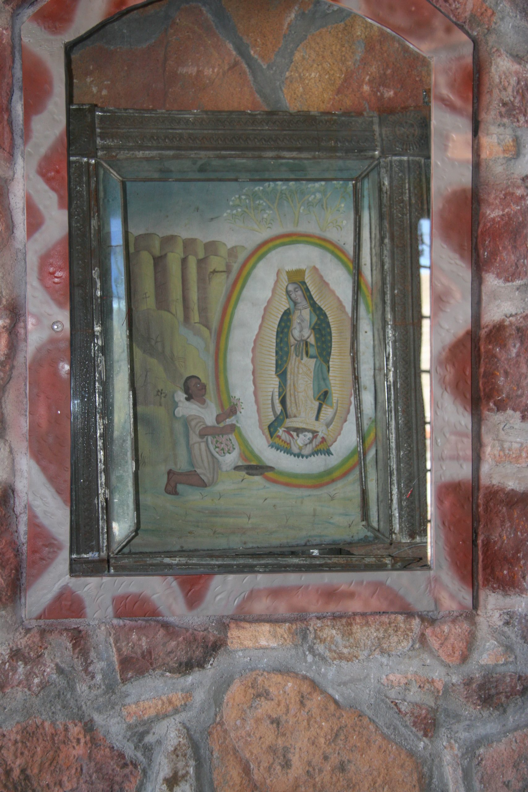 Se consiguió una lámina vieja oxidada y unas molduras rústicas para hacer el marco, sabiendo que no quedó igual a las demás, pero para el festejo se cumplió el deseo. Se entonaron las Mañanitas, el oficio de laudes en su capilla antigua y bajando a media mañana al templo de La Purísima y continuar en procesión al Santuario de los Mártires para la eucaristía de la 1:00 pm., y como llevábamos un cuadro nuevo de la Virgen de Guadalupe, el Pbro. Luis García León la bendijo y realizó unas críticas sobre la pintura y el marco oxidado, pero todos estábamos contentos porque ya teníamos en la comunidad las cuatro apariciones.